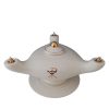 Lucerna 3 fiamme in ceramica (cm).L.27,5 – H.12,5 – P.27,5 bianca con rifiniture in oro + piatto